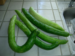 I woke up this afternoon (working late again) and found that my wife had captured five adult cucumbers from our yard. I knew them from their early childhood, so seeing them lined up in our kitchen made me…hungry.